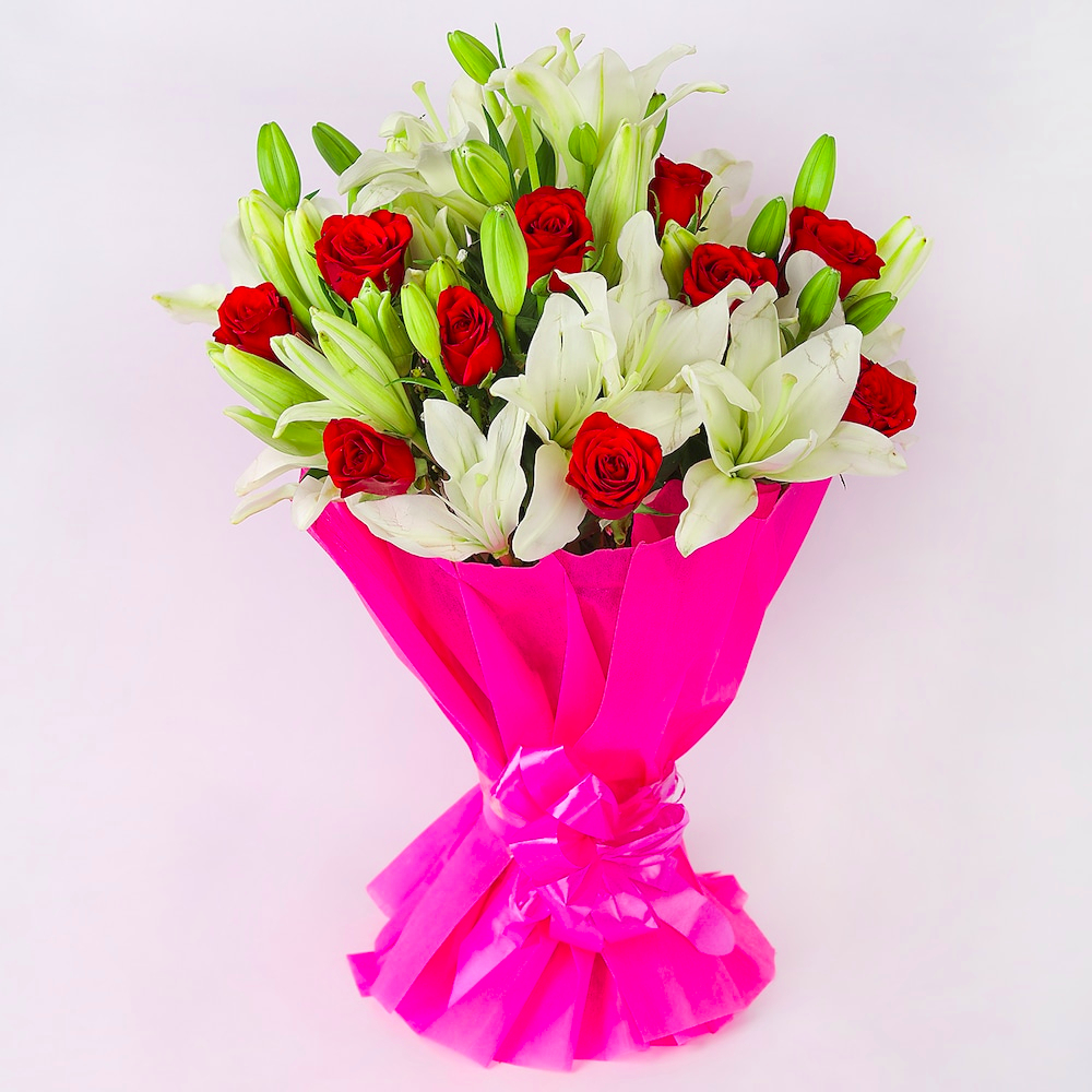 - Flower Type: 10 Red Roses+10 White Lilies